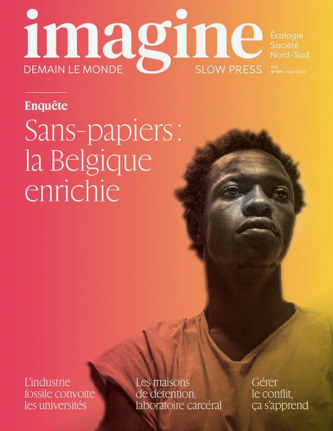... Sur la route du lithium, du Chili jusque chez nous ; au coeur des réalités des sans-papiers, qui font tourner l’économie belge ; dans les universités qui tentent de se débarrasser de l’influence des industries fossiles ; à la rencontre de Jean-Claude Katende, président de l’Association africaine pour des droits de l’homme. On vous fait aussi découvrir que le conflit peut être source de créativité et de changements, l’envers des maisons de détention, prisons d’un genre nouveau, l’histoire de la première chambre judiciaire de l’environnement de Belgique (et d’Europe !), les dessous de la typographie non-binaire. Lisez encore comment l’intelligence artificielle pourrait gérer nos énergies ou la critique du mythe néolibéral de Naomi Oreskes, suivez les pas d’une association qui met l’alimentation durable à la portée des petits revenus et ceux des collectifs d’artistes solidaires.